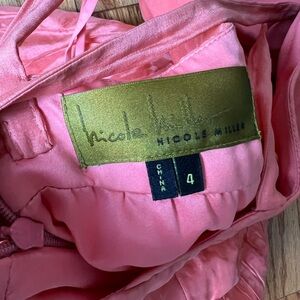 Nicole Miller Silk Coral Dress. Stylish coral sleeveless dress with a crinkled texture. Perfect for summer outings. Gently worn