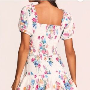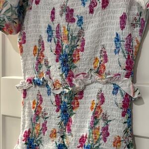 Embrace elegance with this floral smocked dress. Featuring a vibrant mix of colors, it's perfect for any occasion.