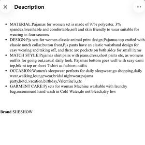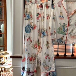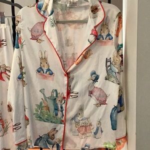 SHESHOW Satin Pajamas Set 2 piece Charming Bunny Print Button Down Size Small