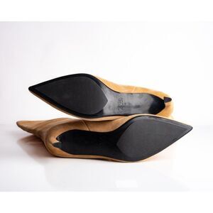 Womens Wide Shaft Split Leather Knee High Boots Dark Tan Split leather boots with a wide shaft. Stiletto heel. Topstitching detail on the front. Pointed toe.