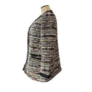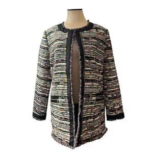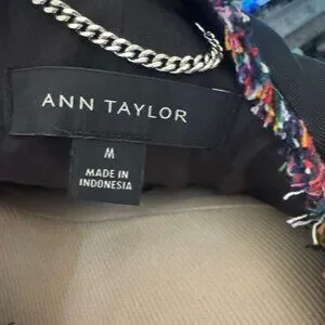 Ann Taylor size M Rainbow Boucle Tweed Jacket/blazer fringe long zipper
