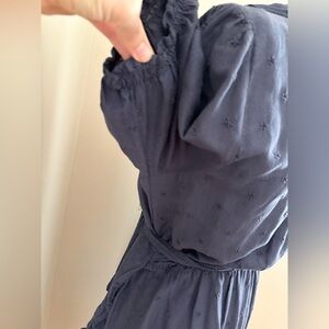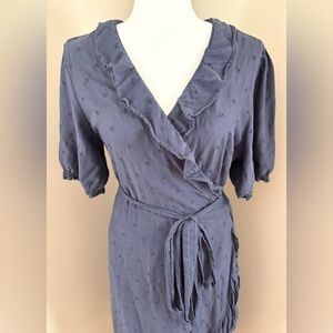 Old Navy Dark Blue Ditsy Floral Cotton Blend True Wrap Frilly Midi Dress