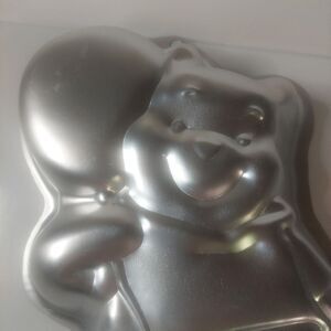 Charming teddy bear cake pan in silver. Perfect for themed baking.