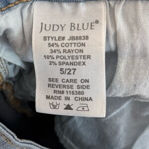 Judy Blue skinny fit distressed jeans in a women’s size 5/27. Jeans are a medium wash and have frayed raw hems at the ankles. Style#JB8838. In excellent condition- no stains, holes, or flaws. Fast shipping!