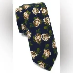 An illustrated floral pattern adds smart style to a charming neck tie to finish your well-dressed look.