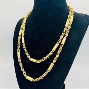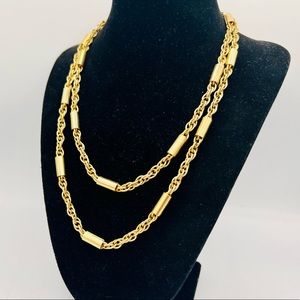 Vintage gold chain unique tube link long wrap necklace 36”