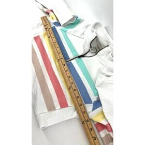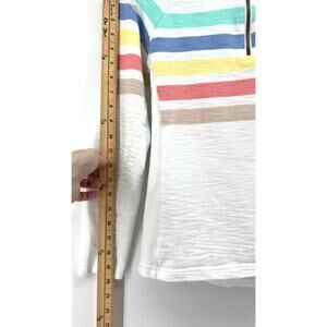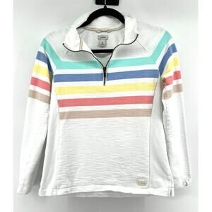 White with colorful stripes 1/4 zip pullover high neck with a pop of color. Great for layering all year.
