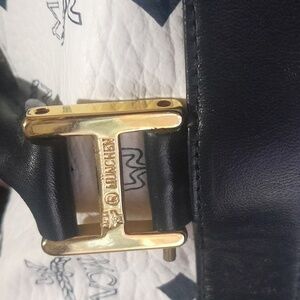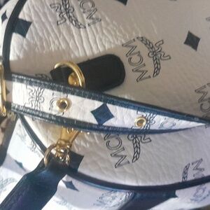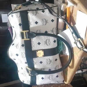 MCM vintage leather Boston black/white bag. Comes with large detachable strap and double straps. . Comes with lock and key. Clean inside, corners great. In excellent use condition. Serial # K123797. About 12.5" wide, 9" deep