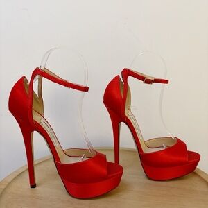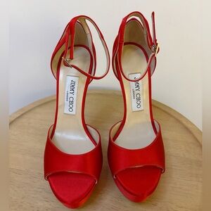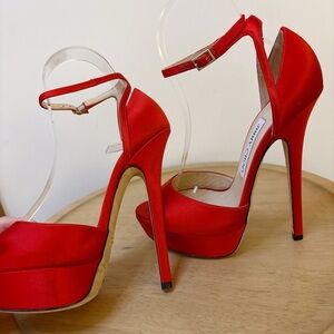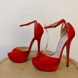 In great condition Jimmy Choo Custom Order Max 150 Platform Heel. There are some normal wear on both heels as seen in the photos.