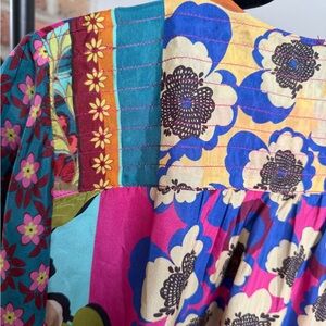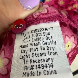 Underscored with an eclectic charm, the Promisino Robi Blouse comprises abstract and vintage-inspired motifs. Spun from liquid-like silk, this blouse features a collar, long sleeves, a button front, and a striking selection of florals. Wear this blouse with slim black pants for a chic yet sophisticated day-to-night look. Each one is uniquely made with a slightly different pattern combination. Sold out online. 100% silk.