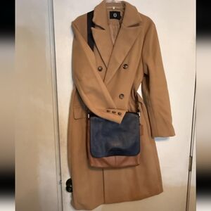 NWT Long Wool Coat Double Breasted Trench Coat Womens Size Medium Camel Color