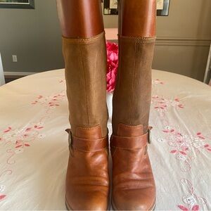 Timberland brown leather and suede riding boots with buckle detail. Perfect for a chic look. Size 9