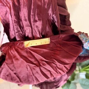 INSANE vintage y2k deadstock grunge fairycore whimsygoth v-neckline babydoll burgundy satin dress, featuring blue stitched paisley design!! Gorgeous!!!! PAPER TAG!!!