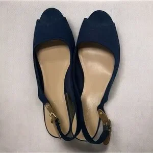 Slingback mid-wedge sandals