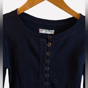 This Ribbed Long Sleeve Top Features Adorable Red Hearts At The Cuffs, With Full Front Button Closure, Stretch, Free People, We The Free, Boho, Heart Detail, NWT