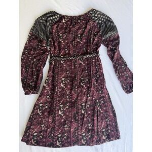 Women's Mid-length Dress Printed, S Long-Sleeve Boho V Neck Dress