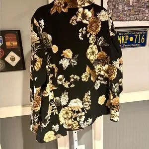 Dennis Basso Black Jacket Brown Floral Lined Pockets Size 26W