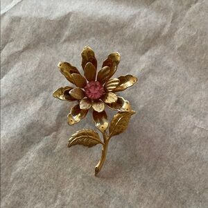 Vintage Gold and Pink Flower Brooch