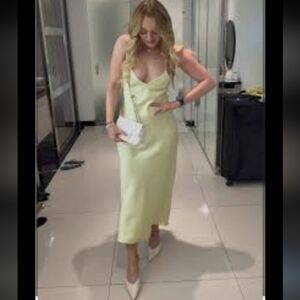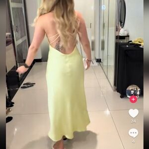 Chic neon green slip dress with spaghetti straps. Perfect for a stylish evening out.
