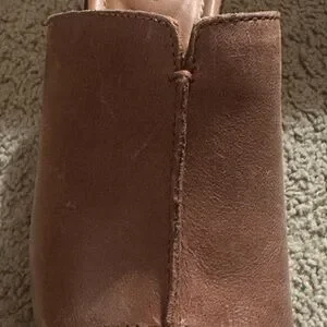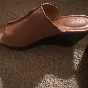 Experience comfort with b.o.c. tan leather mules. Ideal for everyday wear. These were worn once. There are markings on the leather from storage.