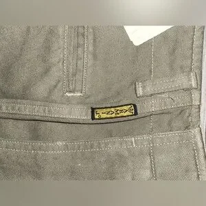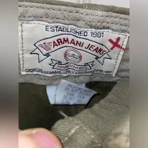 Elevate your casual wardrobe with these designer Armani Jeans khaki pants. The olive green color and vintage chambray fabric make these pants a versatile addition to any collection. The flat front, straight leg style, and mid-rise fit provide a comfortable and classic look.