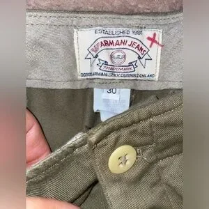 Armani Jeans Khaki Pants Mens Size 30/34 Olive Green Flat Front Casual Cotton