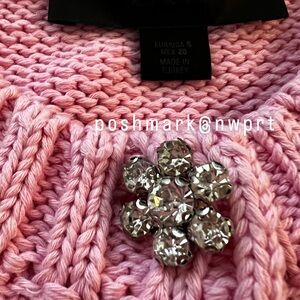 Knit cardigan sweater with rhinestone buttons. Cotton/poly blend. Minimally worn and recently drycleaned. I donβt see any flaws to mention. See photos for measurements. Should be fine for XS or S. Color is similar to bubblegum or barbie pink.