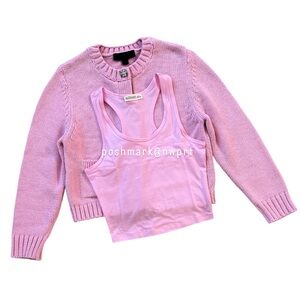 Will also include the tank top (shown) as the shade of pink is nearly identical to the sweater and makes a nice matching set.