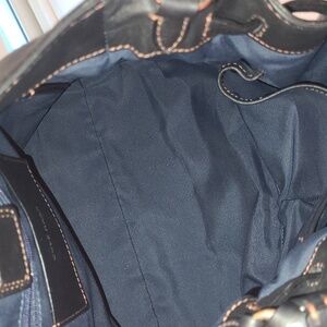 Chic and versatile Cole Haan leather bucket bag in classic black. Features soft pebbled leather, adjustable and removable shoulder/crossbody strap, gold-tone hardware, contrast stiching, and a stylish tassel detail. Spacious interior makes it perfect for everyday use, travel, or work. Timeless design that pairs with any outfit. Like New Condition
