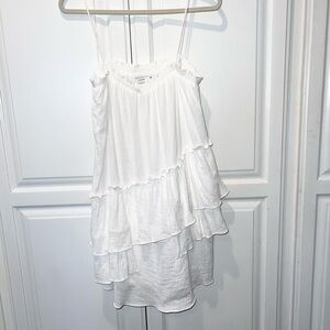 Lush Boho Coastal Cowgirl Ruffled Tiered White Beach Dress Sz Large
