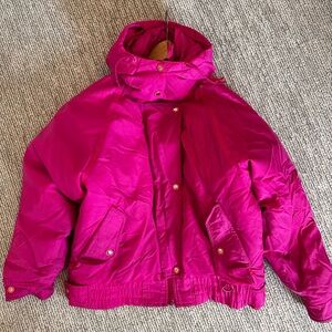 VTG Kitzbuhel Pink Ski Y2K Gaper Day Down Coat with zip hood, Retro,GUC Medium.