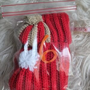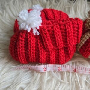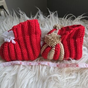 Keep your little one warm with this adorable red and tan knit booties. Perfect for chilly days.
