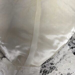 Add timeless charm to your wedding with this vintage satin ring bearer pillow, complete with a matching lace-trimmed doily mat. Dating back to 1980, this heart-shaped pillow features elegant ivory satin with delicate ribbon accents, designed to securely hold your wedding rings during the ceremony. The included lace doily mat adds an extra touch of romance, making it perfect for both traditional and vintage-inspired weddings. This piece is not only a beautiful ceremony accessory but also a sentimental keepsake that can be treasured for years to come. Whether you’re planning a classic church wedding, a rustic outdoor celebration, or looking for a thoughtful bridal shower gift, this vintage ring pillow set will add elegance and meaning to the big day.