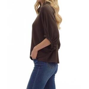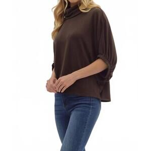 Elevate your wardrobe with the Sally Dolman Top by Entro, a minimalist choice perfect for spring dinner parties. This brown solid knit top features an elegant fold-over turtleneck and elbow-length dolman sleeves with elasticated openings for a refined look. Crafted from a lightweight Viscose blend, it ensures comfort and style, with a composition of 88% Polyester, 8% Viscose, and 4% Spandex. Enjoy the ease of a pull-on closure and simple maintenance with machine wash care instructions.