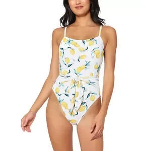 JESSICA SIMPSON Nice Lemons Printed Tie-Waist One Piece Swimsuit in Size Large S