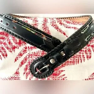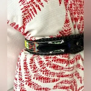 Vintage Belt Leather Beaded Native American Black MultiColor Size Small Navajo