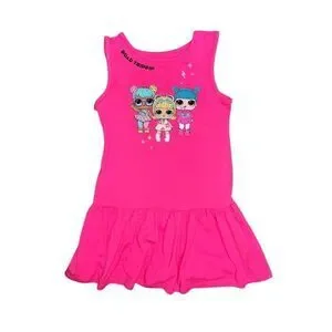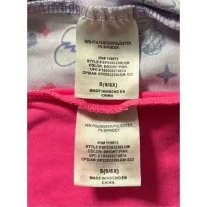 Hot pink and printed lavender purple two summer flare dresses. Sleeveless. 95% polyester5% spandex. Size: 6/6X. Preowned in good condition.