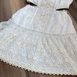 LoveShackFancy Kesia Mini Dress White Lace Cutout Smocked Size XS