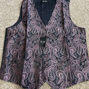 Men's Paisley Vest and Tie Set - Black and Purple
