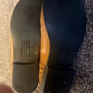 Classic tan leather boots with lace-up design. Rugged and versatile style. They are scuffed on both toes. The left is a lot more than the right I will take pictures of it.
