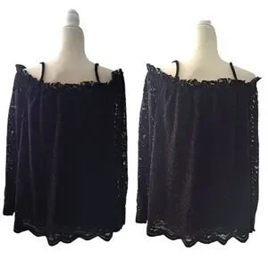 Anthropologie Woman's Eri + Ali Ramona Coldshoulder Off the Shoulder Strap Lace Black Button Cuff Dark Boho Top Small