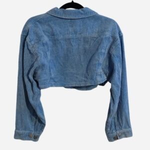 Stylish cropped lightweight corduroy jacket, in the most amazong color blue! Features buttoned front and chest pockets. Perfect for casual wear. SUPER CROPPED