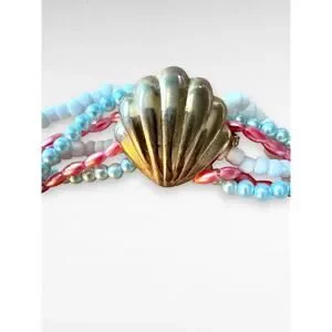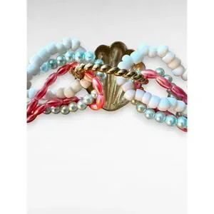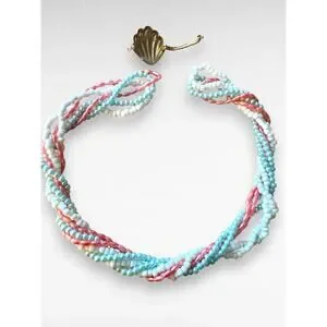 Style and Era Insights: This is a classic torsade necklace, which is the French term for a twisted design. The nautical theme, pastel color scheme, and shell hardware are quintessential 1980s preppy or resort wear fashion. Based on the clasp style, the materials, and the overall aesthetic, this piece likely dates to the mid-to-late 1980s. While there are no visible hallmarks, this style was popularized by brands like Trifari and Liz Claiborne during that era.