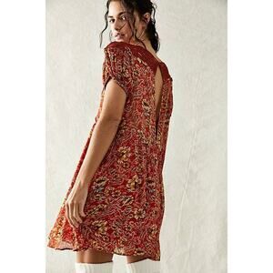 New Free People Margot Boho Floral Mini Dress $168 X-SMALL Terracotta