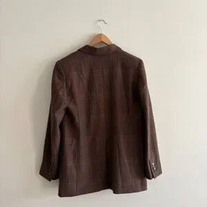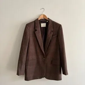 Aritzia Wilfred Generation Blazer Brown Plaid Twill Single Breasted Medium