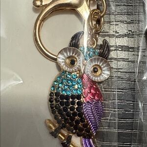 Charming owl keychains with vibrant accents. Features pink, green, and purple details. Ideal for keyring decoration.