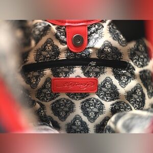 New with tags Ed Hardy tote bag featuring a bold Y2K black panther and logo design. This rare, double-sided tote includes two original bag charms (skull + Ed Hardy charm) and a bright interior lining that makes it easy to see inside.