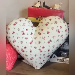 2026. Featuring a heart shape and print pattern with a book lover theme, this 18" × 18" pillow is made of polyester material and has an embroidered design. Ideal for home offices, dining rooms, and living rooms, this throw pillow adds a touch of romance and literary charm to any space.