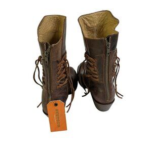 Stetson Womens Emory Boots Handmade Brown Distressed Leather Laced Western NEW