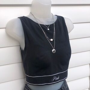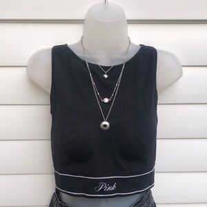 Stylish and comfortable sports bra. Perfect for workouts. Features iconic PINK branding.
